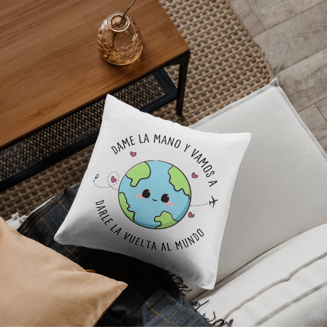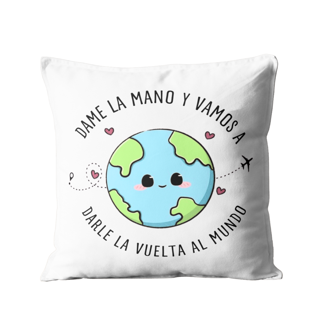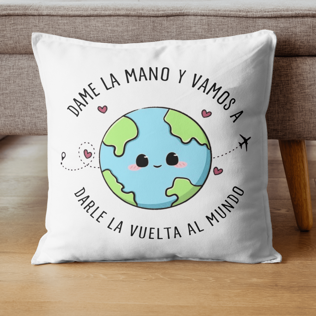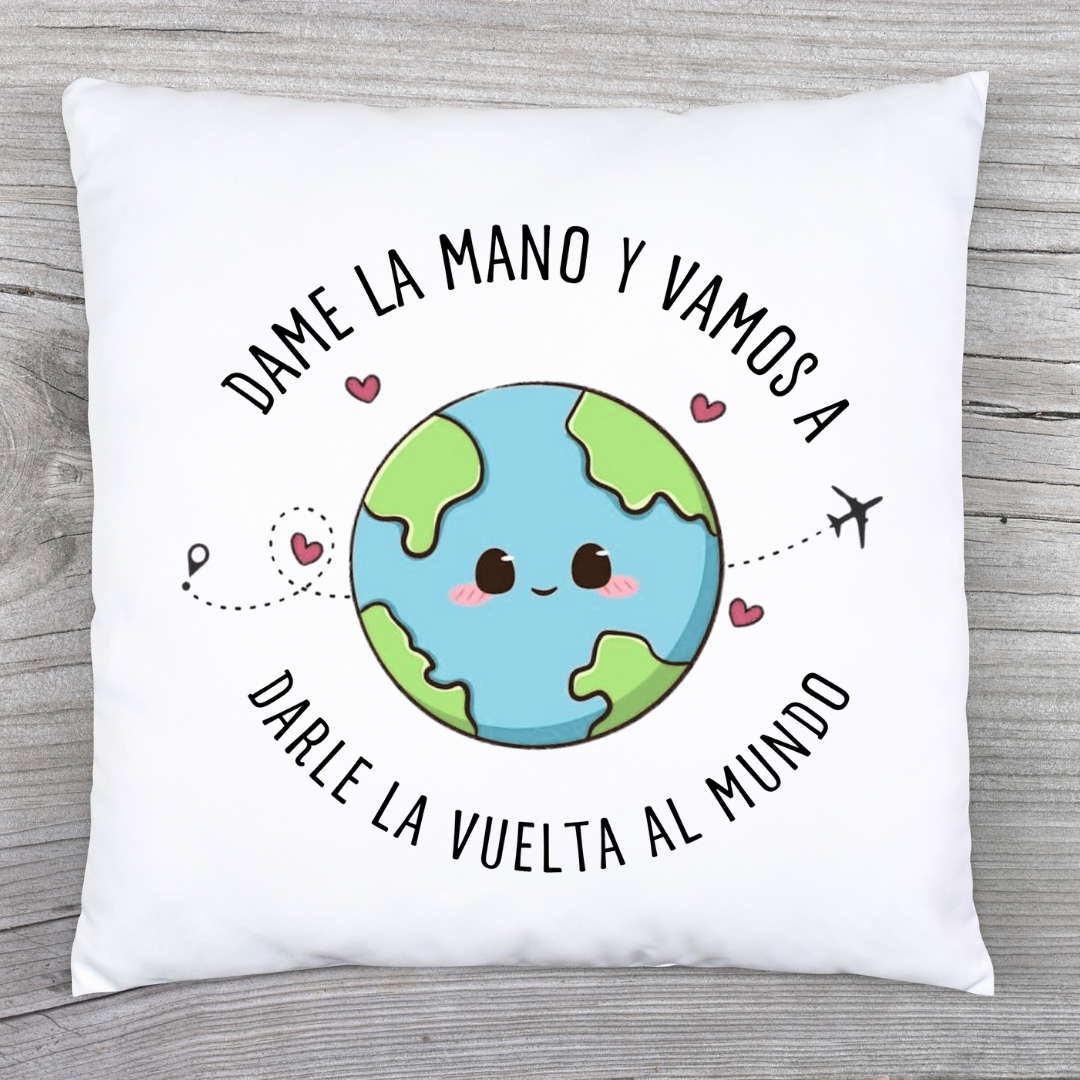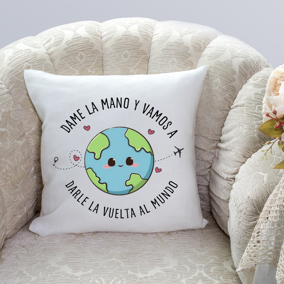 Cojín 'Dame la Mano y Vamos a Darle la Vuelta al Mundo'